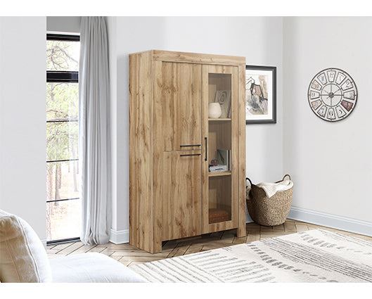 Inspired by traditional oak furniture the Compton range range has been designed to complement both modern and traditional homes. The Compton range is modern, practical, affordable furniture and with stylish black handles looks fantastic too. The glazed display unit has 3 levels of display space, perfect for ornaments, trophies or anything else you particularly like to have on display, whilst the left side of the unit has 3 large shelves. Care instructions: Wipe carefully with a soft, dry cloth.