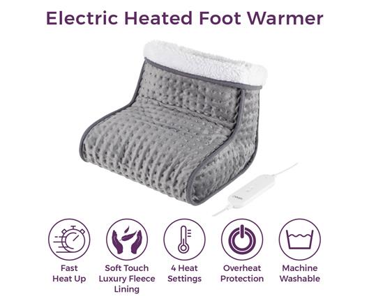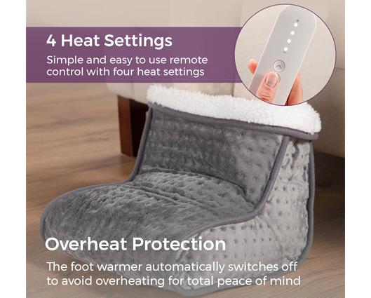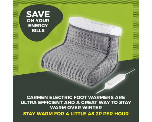 This Carmen Core Fleece Lined Electric Foot Warmer features 85W output, which provides a powerful heat up to help ease pain and aid circulation, so you can keep your feet warm and cosy in an instant. Simple and easy to use remote control with four heat settings allows total control over the warmth of your foot warmer, providing the perfect temperature for all your needs. The detachable controller lets you control the temperature and then it can be removed when the foot warmer lining needs washing. Simply unplug the cord and pop the inner lining in the washing machine for easy care and cleaning. The foot warmer automatically switches off to avoid overheating for total peace of mind.