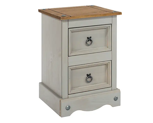 - grey wax and antique wax finish top with gun metal grey exposed hardware