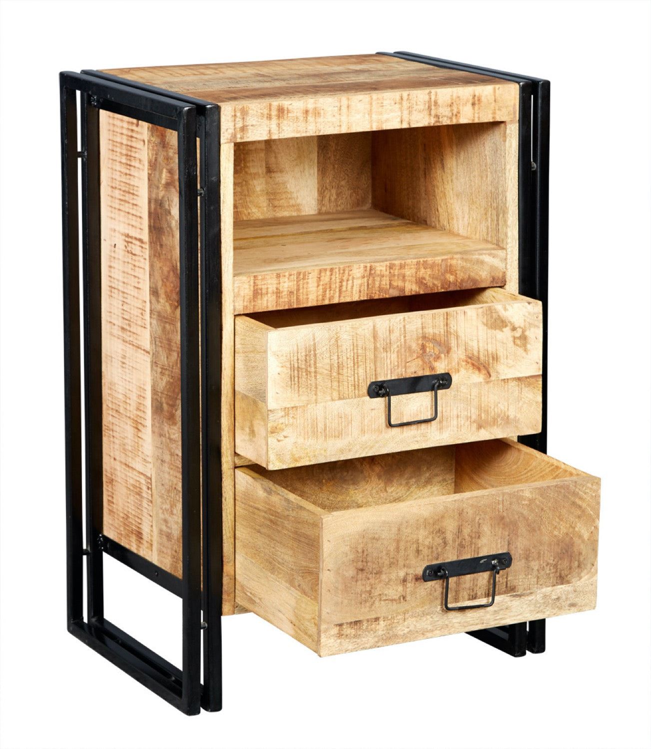 Eco-friendly, hand-crafted range, made from Solid Mango Wood and Reclaimed Industrial Metal. The light grain hardwood is left in its natural state and colour, offering natural variations and slight cracking with banded iron edges