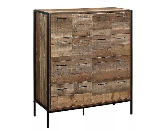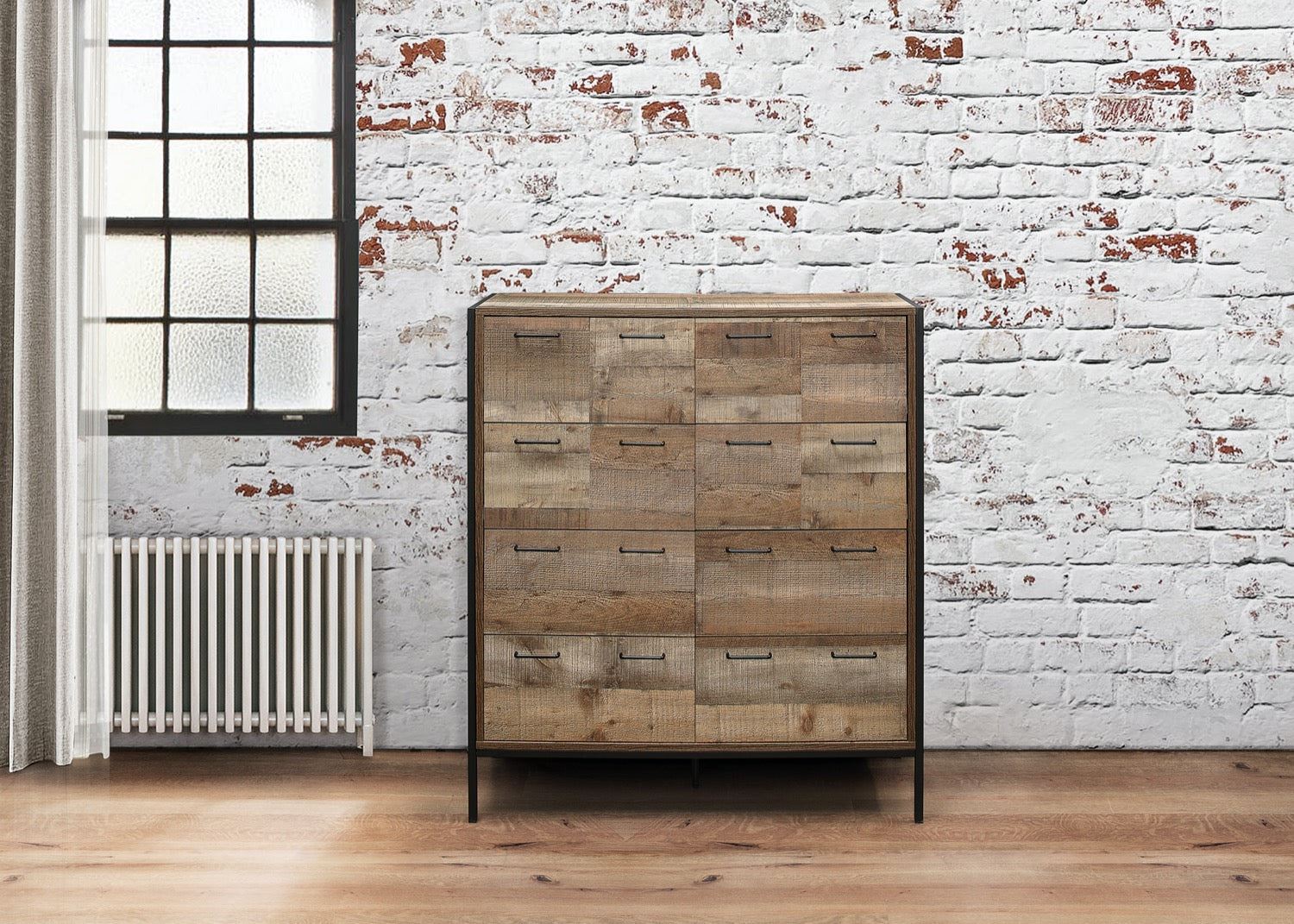 Our Urban bedroom range is perfect for adding a hint of industrial chic to any bedroom. The Urban Merchant Chest is designed to offer a vast amounts of storage space, and will make a great focal point in a bedroom. This versatile range is crafted from a metal frame with industrial-effect detail and has a wood-effect finish. Care instructions: Wipe carefully with a soft, dry cloth. .