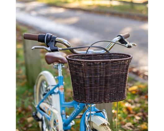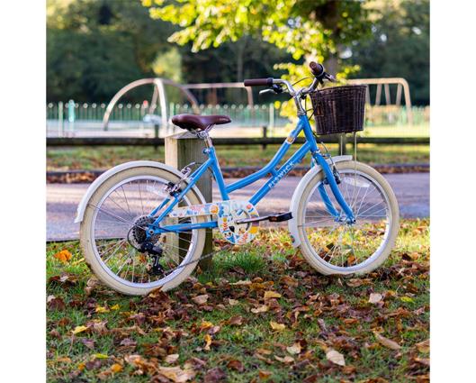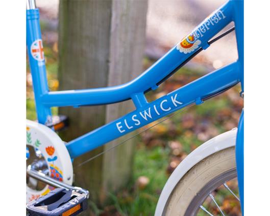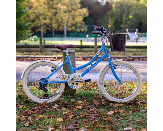 The gorgeous Cherish bike from Elswick sets the benchmark for style and design. Designed with a 12" step-through frame the riding position is leisurely yet responsive, whilst also aiding easy mounting and dis-mounting. The Cherish includes 6 easy to use gears powered through a Shimano rear derailleur to provide reliable gear changing to let you tackle the urban terrain with ease. The frame is finished in a beautiful Hawaiian blue colour with satin lacquer for a low-sheen to set the design apart from the crowd. Front and rear full-length metal mudguards protect you from dirt thrown up from the pavement, whilst the matching full length chainguard provides protection from the chain for your trendy clothes. The subtle design elements from the frame are enhanced by the chainguard design, which mirrors the prints seen on the high-street this season. The Cherish feels fresh and vibrant, with cream front and rear tyres complementing the chrome wheel rims, seat-post, brakes and handlebar. Reliable braking is provided courtesy of the front and rear V-brakes which supply controlled braking power through the reach-adjustable brake levers. As we know comfort is important to you, a wider Elswick leather effect comfort saddle is supplied as standard with complementing soft-touch grips. And for 2019 we've also added a front basket to add a practical feature whilst also enhancing the bikes heritage styling. The Elswick Cherish is a beautiful bike, with it’s own sense of personality and style. The timeless charm of Elswick shines through in the Cherish and is the bike that any young fashion conscious cyclist wants to be seen on. Suitable for children aged approx 7-10 years, inside leg measurement of 56-64cm /22-25"