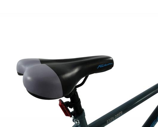 The Falcon Explorer is a great City Hybrid bike with 26" tyres for a smooth more mountain bike style ride. The Explorer has a traditional steel Hybrid frame, forks and wider 26" semi slick tyres for a more comfortable relaxed and enjoyable ride on rough terrain. Smooth rolling tyres ensure your ride is comfortable whilst providing good grip to keep you moving in the right direction. The alloy wheels are both strong and lightweight. Easy to use indexed 6-speed gearing is provided courtesy of the single-handed grip-shift and a Shimano rear derailleur to supply reliable and smooth gear shifting and to help you tackle all but the steepest of hills. Front and rear mudguards add protection from the elements and thanks to the PET acrylic construction they are resistant to knock and bangs. The Explorer has been designed with comfort in mind, thanks to the padded Falcon branded saddle and soft-compound handlebar grips. The heavy duty rear steel rear luggage rack adds extra versatility and makes long rides much more comfortable than if wearing a back pack. Suitable for Adults with an inside leg measurement of 73cm – 90cm / 29-35".