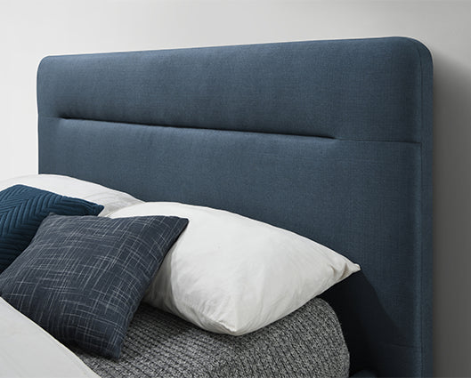 Modern & stylish the Finn bed is sure to impress. The Finn fabric bed is upholstered in a stunning steel blue & charcoal fabric and features an overhanging headboard. The Finn features stunning silver feet making it a real statement piece. Featuring a sprung slatted base to give natural bounce, this bed adjusts to where pressure is most exerted for greater comfort. The maximum weight load for the 4'6 frame is 300 kg, the 5' frame is 400 kg, and the 6' frame is 450 kg. Please note: Our beds are only suitable for a UK standard size mattress and the recommended maximum mattress height is 305mm.