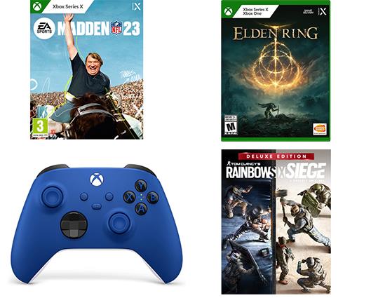 This great bundle includes a wireless controller in Shock Blue and a copy of Rainbow Six Siege, Madden NFL 23, and Elden Ring all for the Xbox Series X.