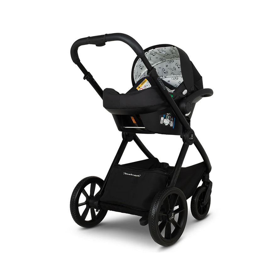 - Suitable from birth up to 25kg - Includes carrycot, pushchair seat, matching Tote i-Size group 0+ infant carrier with adaptors Chassis -Compact, easy-fold lightweight aluminium chassis with handy stay-closed feature to keep it folded in transit or storage - free standing with seat unit attached. - All-round suspension for a smoother ride - Height adjustable, telescopic, vegan leather handle for your comfort - Spacious 8kg capacity storage basket handy zip-up compartment - Quick-release, puncture-proof multi-terrain wheels with bearings for added glide - Lockable front swivel wheels - Flip-flop friendly brake Carrycot - Carrycot suitable from birth up to 9kg (approx. 6 months) with comfy mattress, carry handle and removable, washable liner - Cushioned, supportive mattress - Flip-out sun protection visor with UPF100+ protection - One-hand quick release for easy lift off Integrated carry handle - Suitable from birth up to 25kg so your child can use it for even longer - Folds on the chassis either parent-facing or forward facing - Duo-directional so your baby can bond with you or enjoy the view - One-hand adjustable 3 position recline - Roomy seat with adjustable leg rest - Easy to adjust harness and quick release buckle - UPF100+ protection sunshade hood with extendable sun visor and toy loops - Removable vegan leather bumper bar - Shoulder pads and tummy pad included Tote i-Size group 0+ infant carrier - Complies with the latest R129 safety regulation and is i-Size compliant when used with Tote i-size base (sold separately) - Rearward facing from birth (40cm) up to approx. 15 months (87cm) - Removable new-born seat liner creates optimum seat shape and adjustment for small babies
