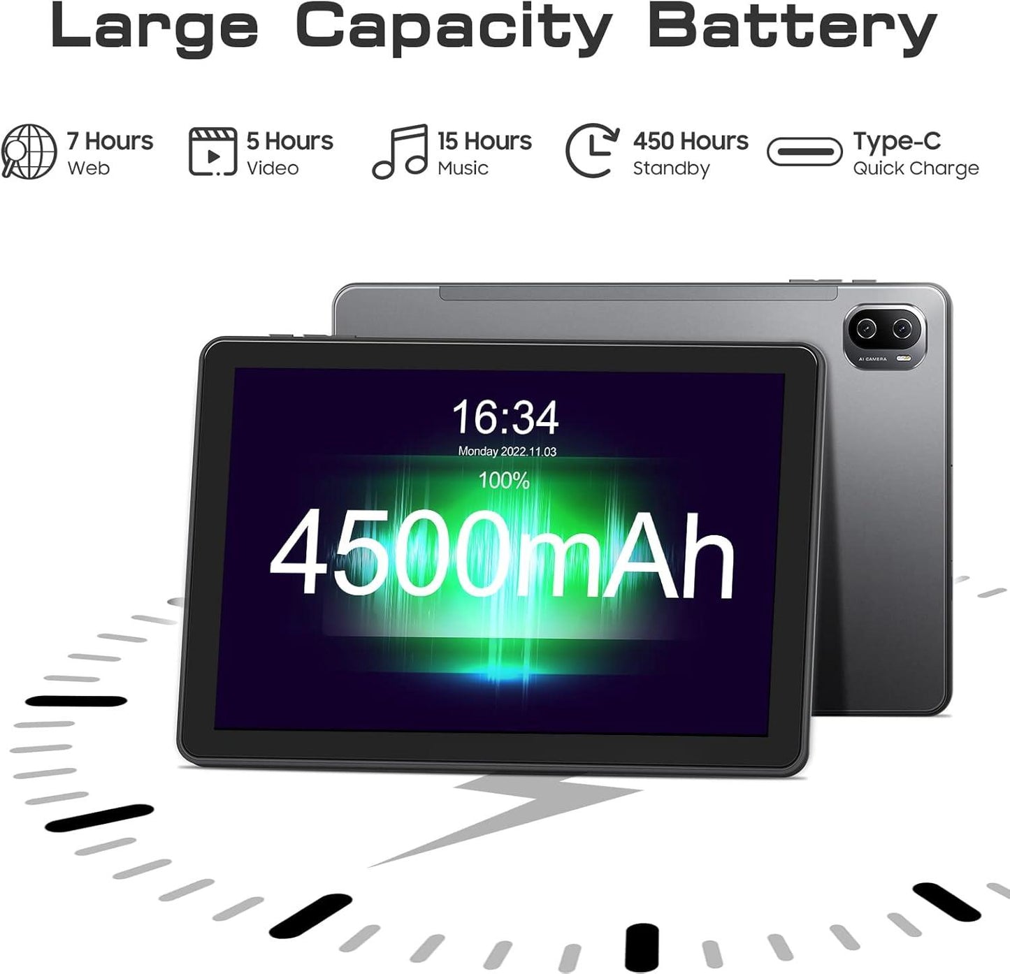 The latest tablet Android 12 released in 2022 provides users with unique permission control for unknown apps, which helps against information leakage. Allows users to stay better protected. You can enjoy installing apps like Netflix, TikTok, YouTube, LINE, Twitter and more from Google Play Store on your GMS certified tablet. The tablet 10 inch is 30% faster with a new quad-core processor. Powered by the new Allwinner New A133 quad-core processor with 64-bit architecture and applications optimized by intelligent Al algorithms based on user habits, the Haehne 10-inch tablet provides users with an excellent operating experience. Four processors and IMG PowerVR graphics processor make the picture more beautiful and the operation smoother. Tablet 10 inch comes with 2GB RAM and 32GB storage space with a built-in Micro SD card slot (expandable up to 128GB), which provides more storage options. Compared to tablets with 2GB RAM in the same price range, it offers better performance and value for money. Haehne Tablet 10 inch high-definition display with 1280 x 800 pixels. The screen can display clear and stable images, so you will not feel eye fatigue after using the tablet for a long time. The extra-large size provides you with excellent visual effects for a better viewing experience when watching movies. Haehne Tablet 10 inch upgraded 4500mAh battery ensures longer use.Up to 7 hours of reading, browsing the web, watching video and listening to music. Type-C interface for easier charging. Fully charges in under 5 hours.Tablet equipped with 5MP rear camera and 2MP front camera to meet general video chat needs.