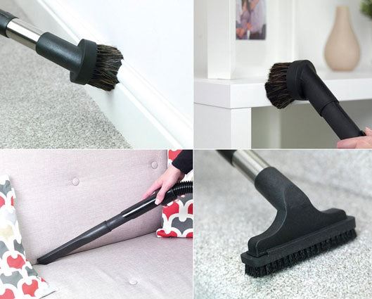 Numatic Henry HVR 160-11 Cylinder Bagged Vacuum Cleaner; Crevice tool; Extension tube x 2; Double taper hose / tool adapter; Soft dusting brush; Upholstery nozzle; Slide-on brush for upholstery nozzle; Combination floor tool; Tube bend; Flomax conical hose; 6 Litre Capacity