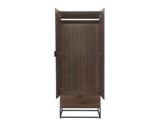 The Hermione 2 door 1 drawer wardrobe offers ample space and features an internal shelf for storing clothing and accessories.The Hermione bedroom range is perfect for adding a hint of modern industrial chic to any bedroom.This versatile range is crafted from a metal frame with a walnut-effect details and a wood-effect finish.Very Easy & Simple to Assemble.