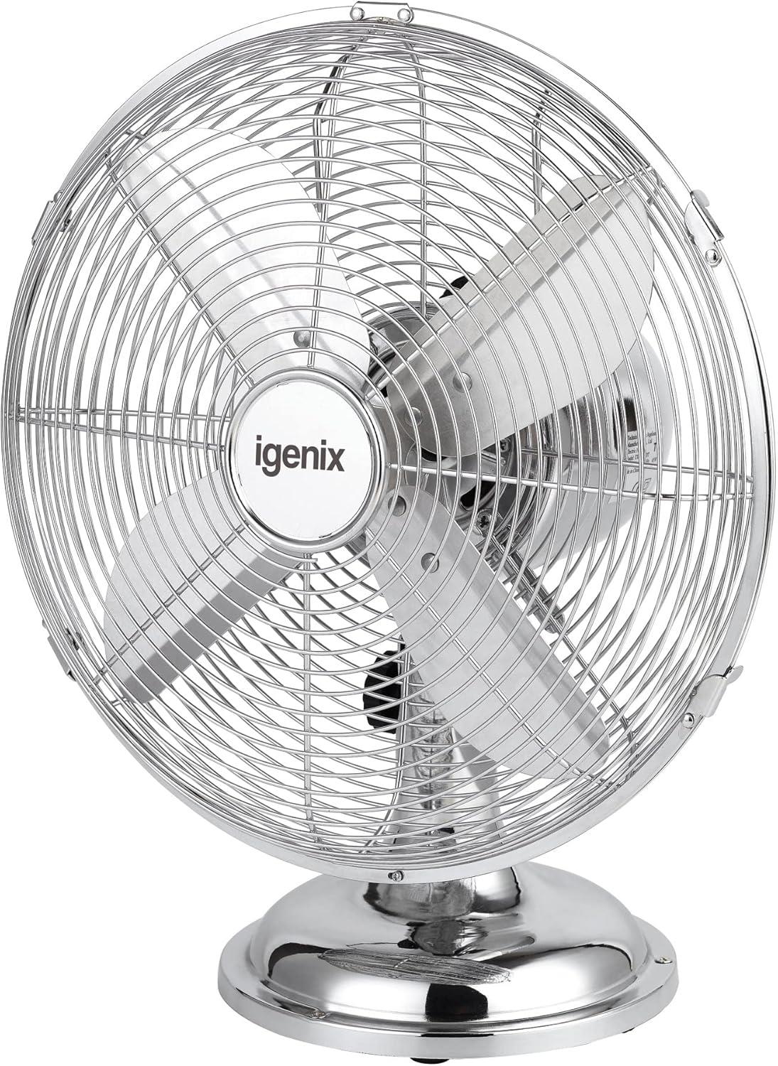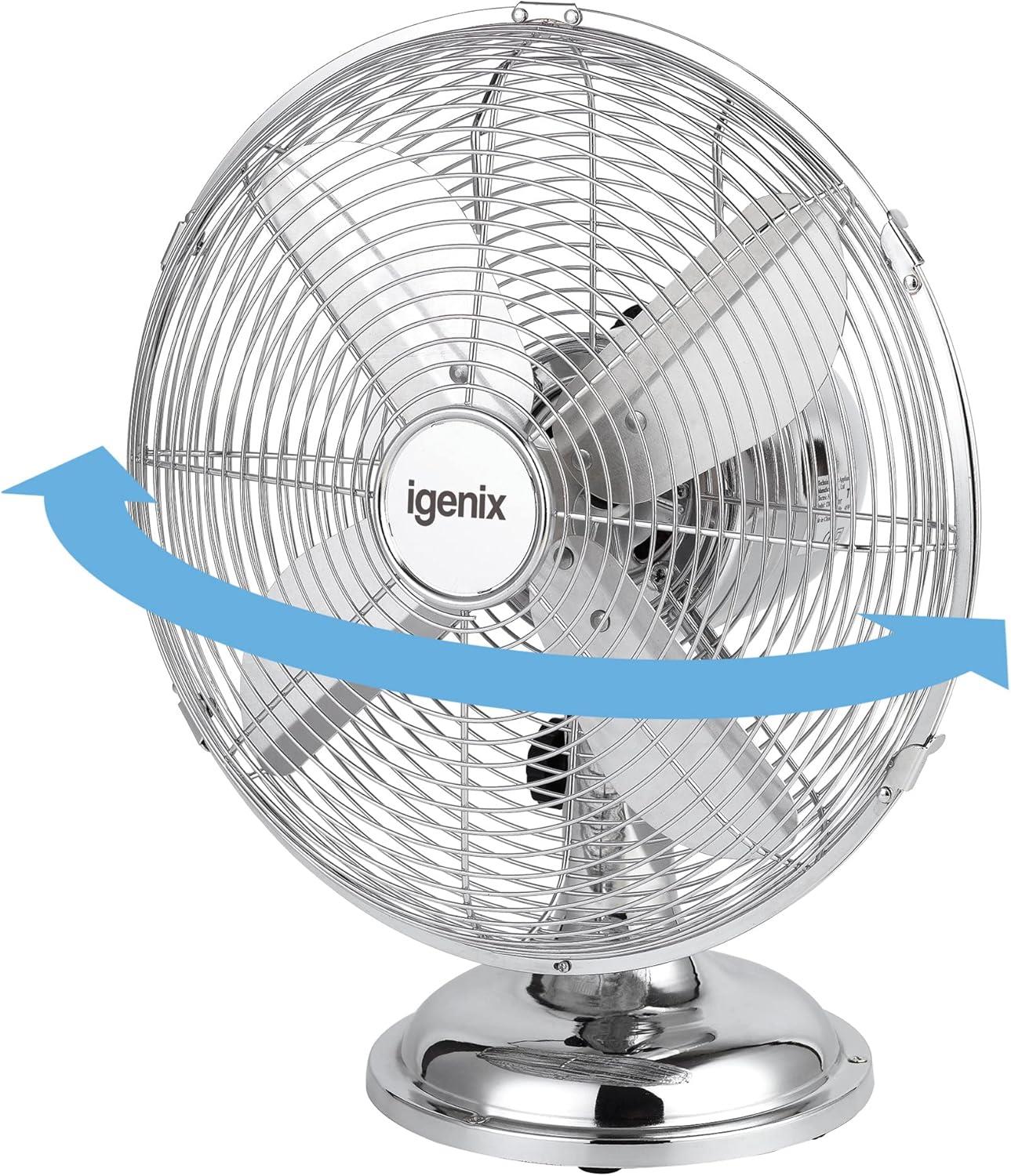 Igenix DF1250 Portable Desk Fan 12 Inch 3 Speed Quiet Operation Oscillating Desktop/Bedside Fan Retro Chrome Design Ideal for Home and Office White