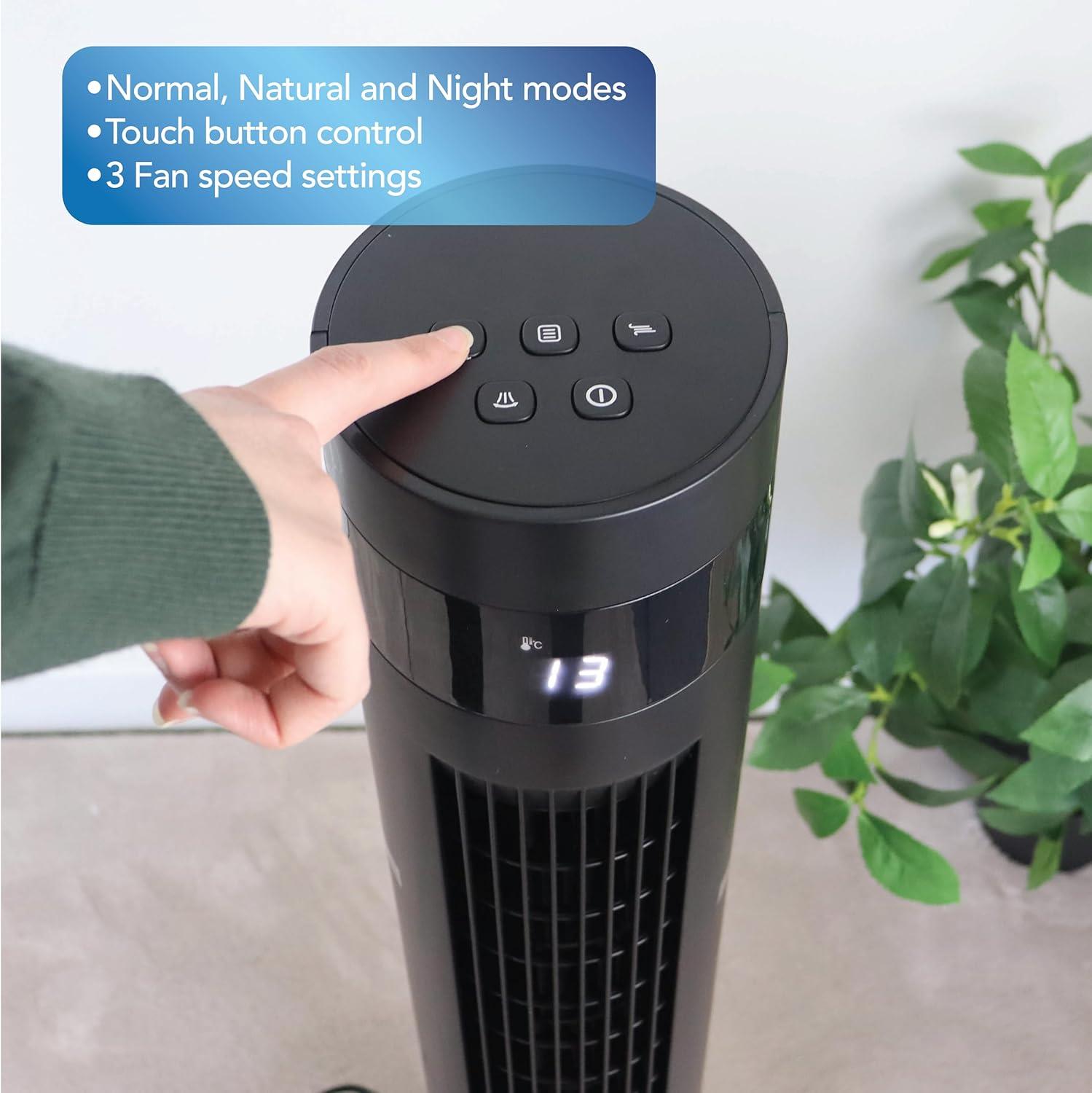 Igenix IGFD6035B Oscillating Digital Tower Fan 35 Inch Remote Control 12 Hour Timer 3 wind speed settings Touch button control Floor Standing for Home & Office Black