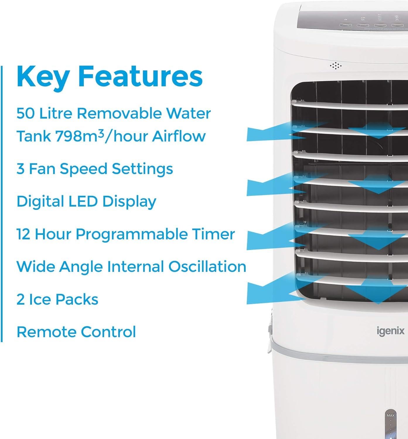 Evaporative Air Cooler with Timer 50 Litre Digital LED Display Igenix IG9750