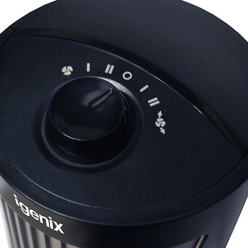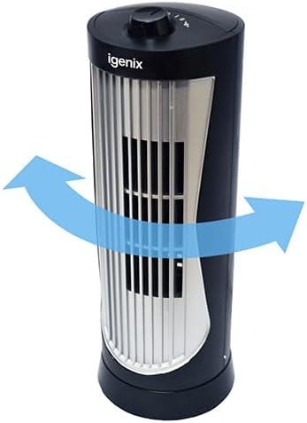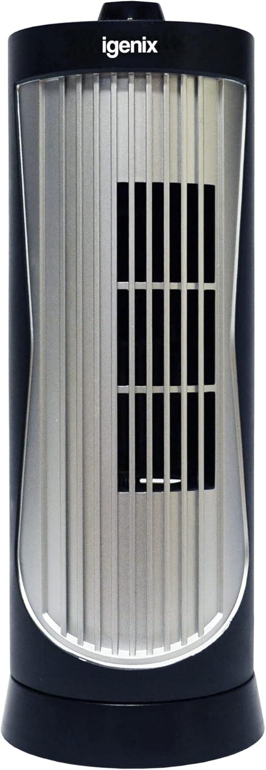 Igenix DF0020 Mini Tower Fan 12 Inch 2 Speed Oscillating Quiet Operation Ideal for Desks or Bedside Tables Home or Office Use Black/Silver