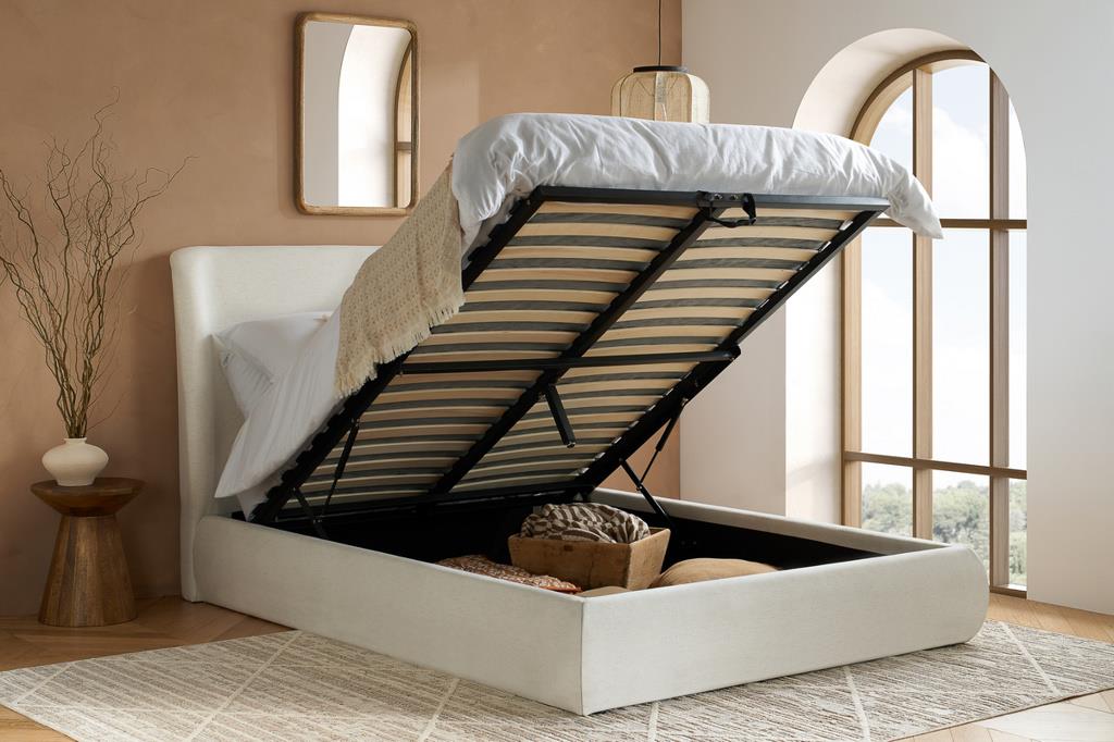 The Lanis Ottoman Bed is a perfect fusion of style and functionality, offering a sophisticated addition to any modern bedroom. Upholstered in soft, natural linen fabric, this bed brings a relaxed yet refined aesthetic to your space. The linen fabric not only enhances the visual appeal with its subtle texture but also adds a touch of natural elegance, making it a timeless choice for those who appreciate understated luxury. The Lanis Ottoman Bed doesn�t just look beautiful�it also offers impressive storage options. The spacious ottoman compartment underneath the bed frame is ideal for keeping extra bedding, clothing, or other essentials neatly stored away, making it a practical solution for maintaining a clutter-free bedroom. Crafted with a sturdy wooden frame, the bed ensures both durability and support, while the sprung slated base provides excellent mattress support for a comfortable and restful sleep. Combining beauty with practicality, the Lanis Ottoman Bed is the perfect choice for those seeking a chic, space-saving solution for their bedroom.