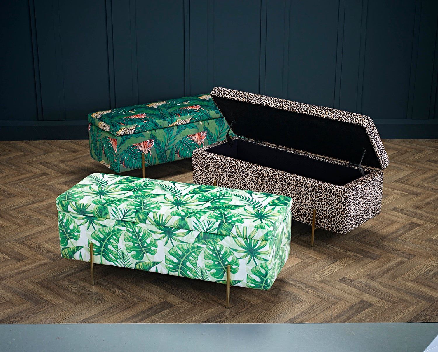''The luxurious velvet Laretta Storage Ottoman is the perfect upholstered storage bench for any room of the home. The comfy, plush velvet against the detailed, metallic legs will give your home an elegant and contemporary feel whilst practically creating storage space.''