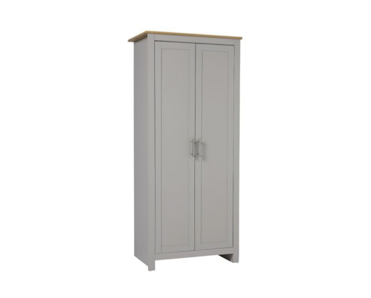 The wardrobe has a full length hanging rail and a useful shelf above, perfect for boxes or folded clothes, with space at the bottom for footwear and has two modern chrome finished bar handles.