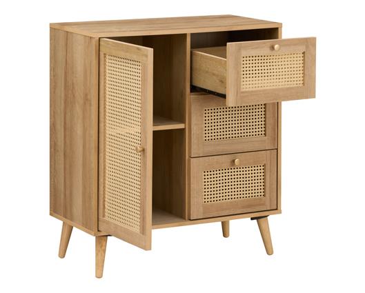The Manila Compact 1 Door 3 Drawer Sideboard is a stylish storage solution that blends natural textures with a space-saving design. Featuring a warm oak-effect frame, the unit has a single cupboard door on the left and three drawers stacked vertically on the right, each finished with PVC Rattan fronts for a soft, organic look. Perfect for compact spaces, this sideboard offers practical storage for living rooms, hallways, or dining areas while adding a light, airy aesthetic to your d�cor. Key Features One cupboard and three drawers for versatile storage PVC rattan detailing on all front panels for natural texture Compact footprint, ideal for smaller spaces Oak-effect frame for a warm, neutral base Complements both modern and rustic interiors Supplied flat-packed for easy home assembly Whether used for stashing everyday essentials or displaying your favourite homeware, the Manila Compact Sideboard adds both charm and functionality.