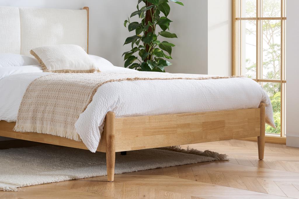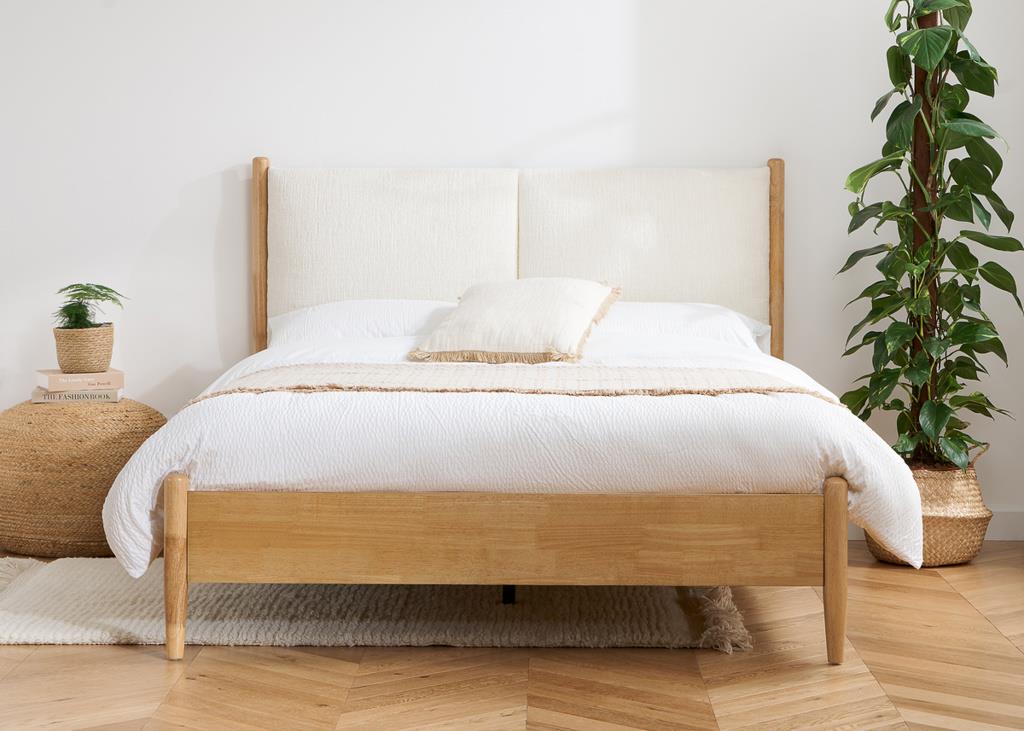 The Marley Bed is a harmonious blend of natural materials and refined design, offering a serene and stylish addition to any bedroom. Featuring a plush linen headboard, this bed creates a soft, inviting focal point in your space. The luxurious linen fabric provides both comfort and texture, offering a tactile experience that enhances the bed�s elegant design. The bed's oak-effect frame complements the linen headboard, bringing a warm, natural aesthetic to your room. The oak finish highlights the beauty of natural wood, adding a contemporary yet timeless appeal that works seamlessly with various interior styles. Its clean lines and minimalist design provide a sophisticated, calming atmosphere. Designed for both beauty and functionality, the Marley Bed is built with a sturdy frame for durability, while the sprung slated base offers excellent mattress support, ensuring a restful sleep. This bed is perfect for those who appreciate a natural, relaxed design that blends plush comfort with modern elegance.