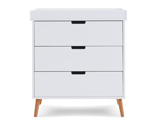 - Changing area is removable once no longer required to create a flat top chest of drawers