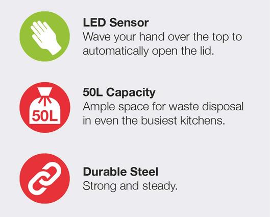 Contemporary design with sensor activated lid Made from high quality polished stainless steel Lid opens automatically when approached Lid closes after 5 seconds of inactivity Retainer ring allows easy replacement of bin liners Including 3 lemon scented free bin liners Size: H72.2 x W34.2 x D24.6cm (H91cm when open) Requires: 4 x AA type batteries (not included) Colour: Polished S/Steel Packaging type: Colour gift box