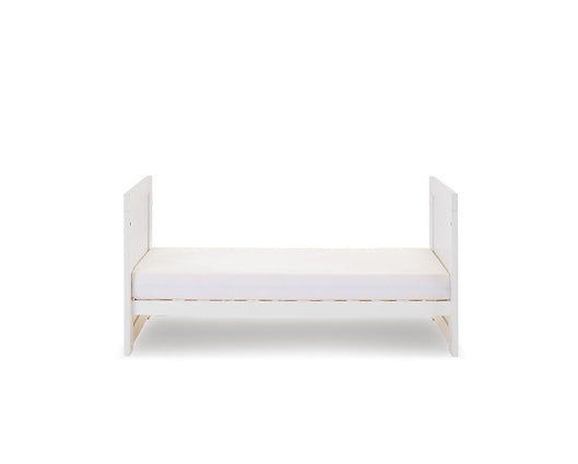 A contemporary design, due to its clean lines and textured oak effect finish, that will fit perfectly in today’s modern nursery. For the smaller nursery, this Mini cot bed is more compact than the full-sized cot bed without compromising on features, the Mini has three mattress base positions, the highest allowing you to put down and pick up your newborn without straining your back through unnecessary bending. As your little one starts to develop and become more active, the mattress base can then be lowered by a further two positions keeping them safe and secure at all times while the teething rails protect their delicate first teeth. When your little one is standing confidently, the mini can be easily transformed into a stylish toddler bed that still offers the familiarity they are used to and helps them to transition in an often-daunting time.