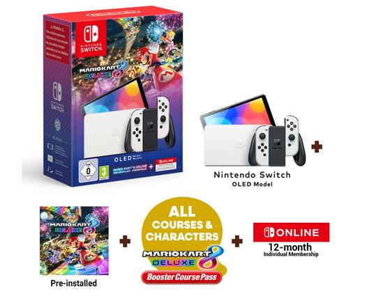 Nintendo Switch OLED White Console + Mario Kart 8 Deluxe + 12 Months Nintendo Switch Online