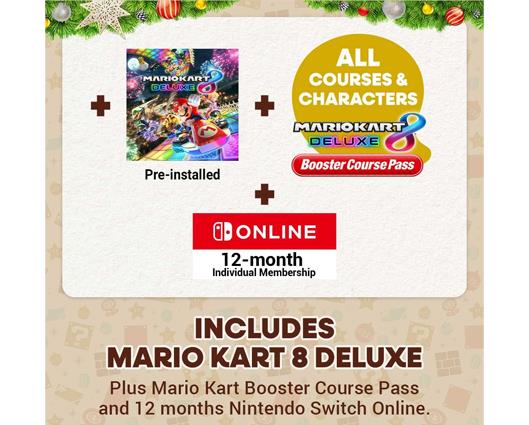 Nintendo Switch OLED Model (White) +Mario Kart 8 Deluxe Pre-Installed and Nintendo Switch Online12 Month Subscription Redemption Code+ All Courses & Characters Mario Kart 8 Deluxe Booster Course Pass. Nintendo Switch OLED Model: Level up with an OLED screen that makes colours pop. Play anytime, anywhere. The Nintendo Switch OLED White Model system includes additional features to take your gaming experience to the next level. Enjoy vivid colours and crisp contrast with a 7” OLED screen that makes colours pop. Freely angle the system’s wide, adjustable stand for comfortable viewing in Tabletop mode. Enjoy enhanced sound from the system’s onboard speakers when playing in Handheld and Tabletop modes. Get the gaming system that lets you play the games you want, wherever you are, however you like. Bring the full home gaming system experience with you to the park, on an airplane, in a car, or to a friend’s house.