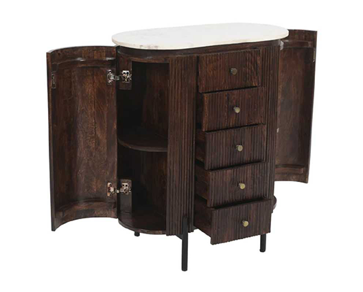 Olin Mango Wood Wide Chest Of Drawers with Marble Top & Metal Legs