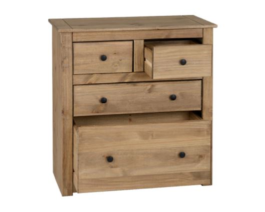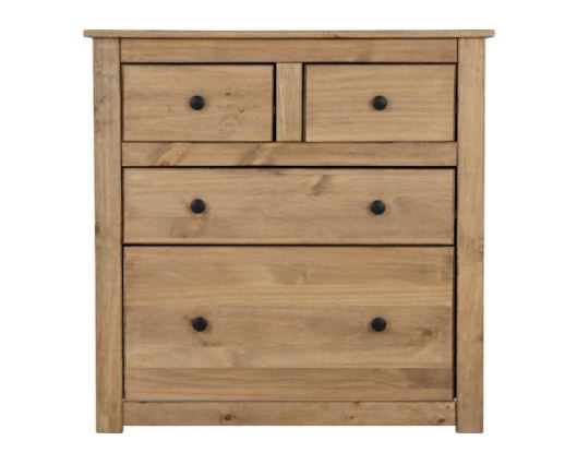 The Panama 2+2 Drawer Chest is is a piece of furniture made for life with style in mind. Constructed from the finest solid pine timbers, and then coated in a natural oak wax to protect and preserve wood and to let the natural beauty of the wood grain to show through even more.