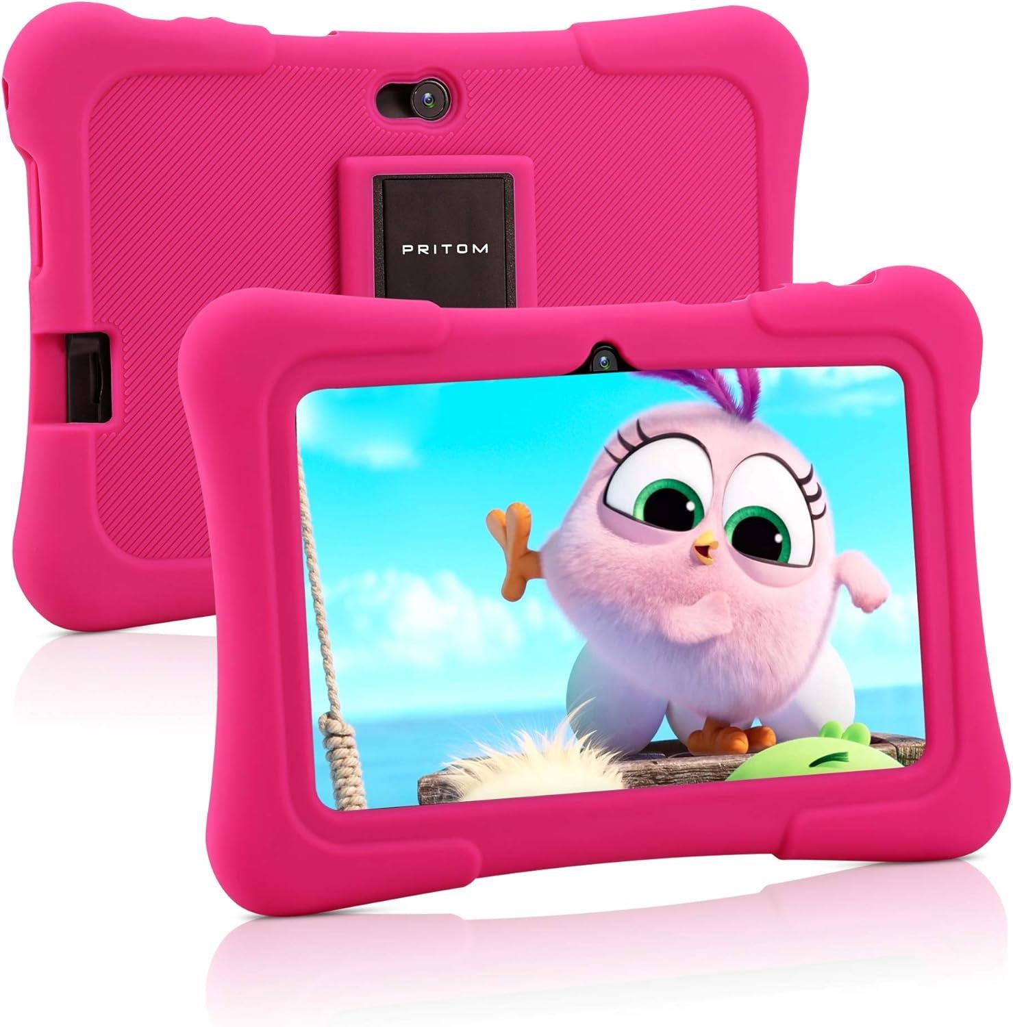 Pritom Kids Tablet comes with a safe and funny iWawa Kid's software free pre-installed apps for Kids learning & playing, free kids app in the kids store, you can download different apps or programs from the Google Play store. An ideal gift for birthday or Christmas, holiday season for kids or yourself. The kids edition tablet designed for kids to learn and grow in pleasure. Digital education content provided in PRITOM kids edition tablet fits for children aged 3+ to 12 . Filter age limit, difficulty set and browsing channels to make the mini laptop more suitable for your child�s age. With Parental Controls, parents can decide on screen time (no more worry about kids playing tablets for too long), hand-pick kid�s content, and block inappropriate websites and applications. Pritom kids tablets is a modern tablet designed for kids to focus on building a safe children's entertainment environment. It has security controls (APPs and network filters); Content management (APPs recommendation and classification, multimedia, etc.); Behavioral restrictions (child locks, spending limits, game time limits, preference data analysis); Theme and user settings, etc. Easy to operate and enough for kids to watch movies, play games & listen to music. Kids can have their own private playground and the kid-friendly Interface makes it easy to use. Kids can access to educational and entertaining apps and websites without any undue risk.Everything in PRITOM TABLET for children is suitable for your child's age and skill level. So they always play and learn at the highest level.Effective games and apps are designed to provide innovative digital educational content for kids ages 3+ to 12 , learning animals, learning fruit, typing. Pritom k7 Kid-Proof Case is made of a lightweight, durable, kid-friendly, impact-resistant soft silicone material that protects the tablet from scratches, dirt and bumps, drops, dust, etc. The soft material provides soft and smooth touch experience. The case has stand function, so kids don't need to hold the tablet all the time while learning, watching and playing games. let the kids fondle admiring.