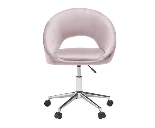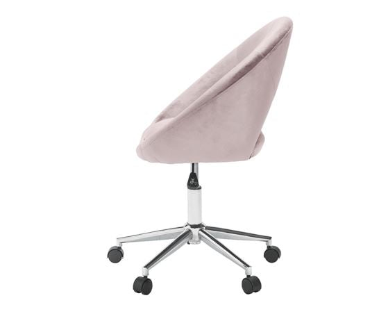 Modern and contemporary, the Sabina will offer a soft, art deco feels to your home office space. Upholstered in velvet in a choice of 2 colours, complete with chromed silver legs.