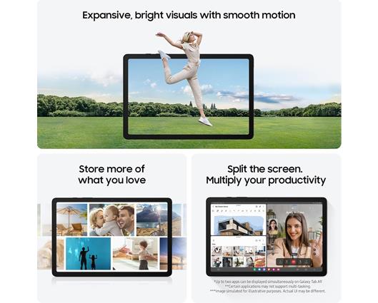 The Galaxy Tab A9 is perfect for watching movies and TV shows. It's got a nice and bright 8.7" screen that lets you enjoy every detail. And to make sure the audio is just as good, there are two powerful speakers. They use Dolby Atoms surround sound to make your shows even more gripping. And if you need to knock a thing or two off of your to-do list, all your apps will be snappy thanks to the octa-core processor.