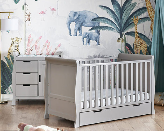 This furniture range offers families the perfect combination of style, quality and practicality. The Classic 2 piece room set consists of the beautiful Classic cot bed with under drawer and closed changing unit. Both pieces feature the same elegant sleigh design.