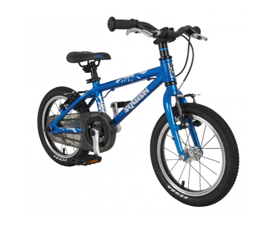 The perfect introduction to 2 wheels! The Squish 14 has been built to be as lightweight, and as easy to use as possible. 14" wheels and an 8" triple butted frame make it ideal for riders of 3 years and above. With it's shortened crank arms, stubby stem, short reach brake levers and funky Squish branded saddle, it not only looks cool but is ideally in proportion with it's intended rider. We've even treated the rims to CNC sidewalls to help increase braking performance and safely tucked away the chain and cogs with a fully enclosed chainguard, great for protecting clothes...and curious little fingers! All this, and weighing just 5.83kg