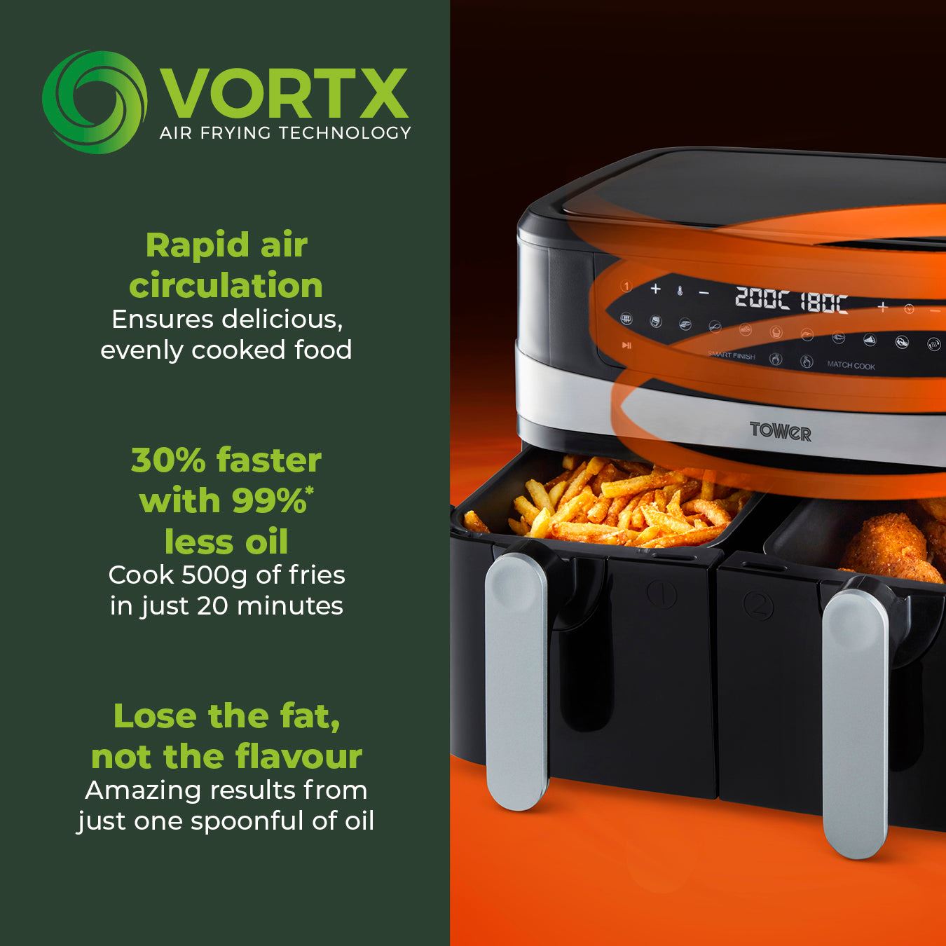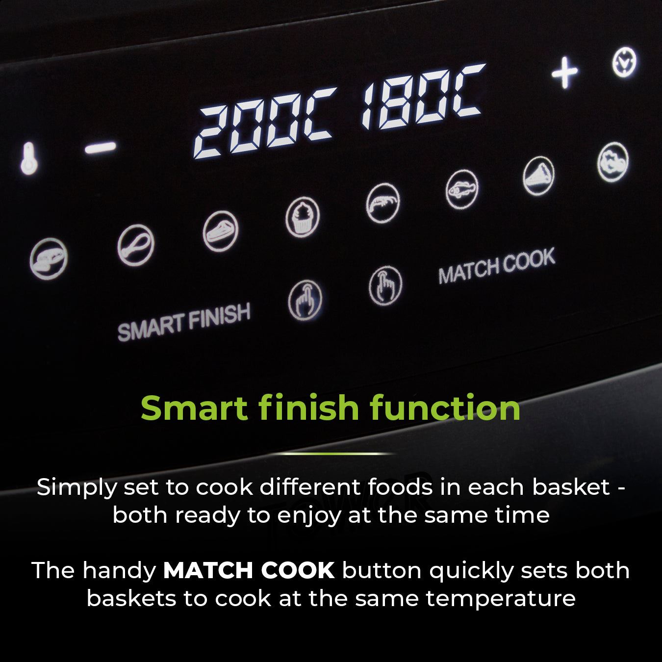 Dual 4.5L baskets to cook two different dishes at the same time.