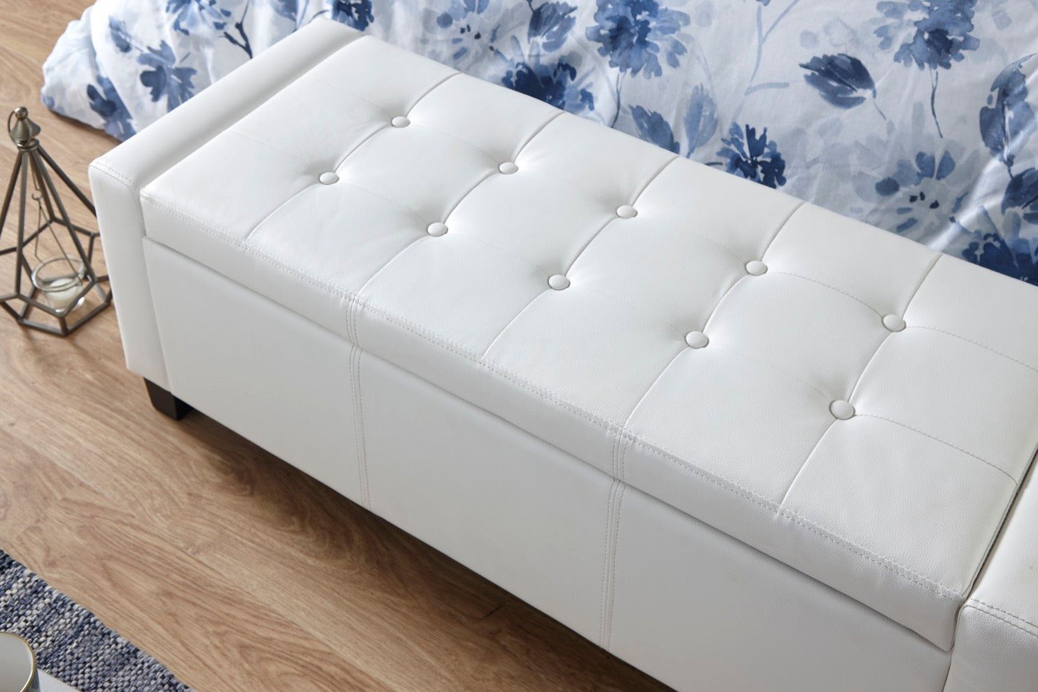 The Vanessa Ottoman Bench offers a simply stunning design. Featuring deep buttoned detailing on the lift-up lid, this ottoman is available in either Black or Brown faux leather. Ideal for those looking for a comfortable seating area where space may be limited. Crafted to an exceptionally high standard this ottoman comes complete with wooden feet. The seating area of the Vanessa Ottoman lifts up to reveal a spacious storage area that will help you to reduce the clutter in your home.