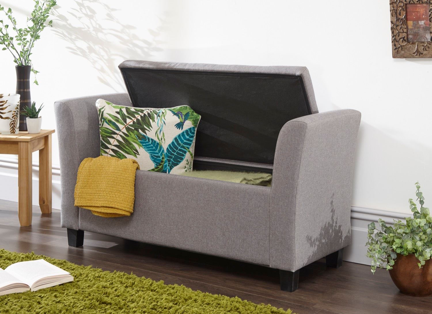 The Vanessa upholstered window seat offers a stunning, elegant design. Featuring deep buttoned detailing on the lift-up lid, this Vanessa Window Seat is available in a stylish textured grey hopsack fabric. Ideal for those looking for a comfortable seating area where space may be limited. Crafted to an exceptionally high standard this window seat comes complete with wooden feet. The seating area of the Vanessa Window Seat lifts up to reveal a spacious storage area that will help you to reduce the clutter in your home.