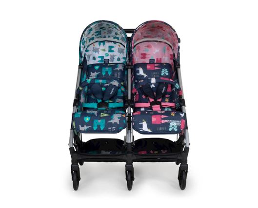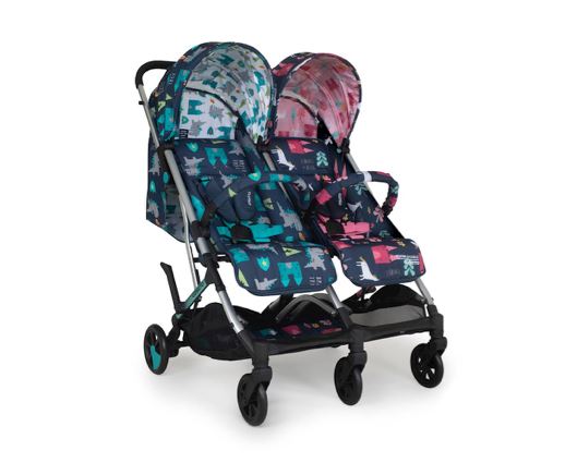 Birth to 22kg - The new Cosatto Woosh Double is an easy-to-use stroller with big solutions. Suitable from birth up to 22kg (per seat). Sleek and Sporty- Woosh Double is great for city life thanks to a number of clever features. With self-aligning lockable front swivel wheels and all-round suspension, you'll feel safe and secure when manoeuvring Woosh Double. There's also a one-hand fold option that allows to you quickly convert your Woosh Double into a lightweight, compact bundle at just 11kg. It even has a free-standing fold option. Add in the two independent, removable rotating bumper bars and nothing is getting in your Woosh Double's way. Makes Life Easy-Woosh Double in Bro Sis has a number of fantastic extras built specifically to make life easy for you and your children including multi-position, independently reclining seats. Plus, there's plenty of storage thanks to a spacious basket that can take up to 5kg and handy pockets on the hoods. Along with roomy seats, adjustable independent calf support for little legs and a viewing window to keep tabs on your petite passenger, Woosh Double makes life easy. Weatherproof - This Cosatto double stroller is full of luxury tech fabrics to combat all weather conditions. Woosh Double comes with the original Cosatto raincover, UPF100+ hoods and double-length sun visors to protect against the sun rays. Woosh Double is on a mission to protect your child from naughty weather.